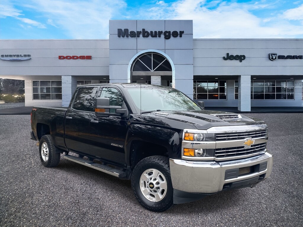 2018 Chevrolet Silverado 2500HD Work Truck Preferred Equipment Group 1WT (Rear 60/40 Folding Bench Seat (Folds Up) and Steering Wheel), Standard Suspension Package, Trailering Equipment (Integrated Trailer Brake Controller), WT Convenience Package (110-Volt AC Power Outlet, Deep-Tinted Glass, Remote Keyless Entry, and Remote Locking Tailgate), 17" Machined Aluminum Wheels, 17" Steel Wheels, 4-Wheel Disc Brakes, 6 Speakers, 6" Rectangular Chromed Assist Steps (LPO), ABS brakes, Air Conditioning, AM/FM radio, Auto-Dimming Inside Rear-View Mirror, Black Power-Adjustable Heated Outside Mirrors, Brake assist, Bumpers: chrome, Cloth Seat Trim, Delay-off headlights, Driver door bin, Dual front impact airbags, Dual front side impact airbags, Electronic Stability Control, Engine Block Heater, Exhaust Brake, Exterior Parking Camera Rear, Front 40/20/40 Reclining Split-Bench Seat, Front anti-roll bar, Front Center Armrest w/Storage, Front reading lights, Front wheel independent suspension, Fully automatic headlights, Low tire pressure warning, Occupant sensing airbag, Overhead airbag, Overhead console, Passenger door bin, Passenger vanity mirror, Power steering, Power windows, Premium audio system: Chevrolet MyLink, Radio: AM/FM Stereo w/Chevrolet MyLink, Rear reading lights, Rear seat center armrest, Rear step bumper, Speed control, Split folding rear seat, Spray-On Pickup Box Bed Liner w/Bowtie Logo, Tachometer, Tilt steering wheel, Traction control, Trip computer, Variably intermittent wipers, and Voltmeter.