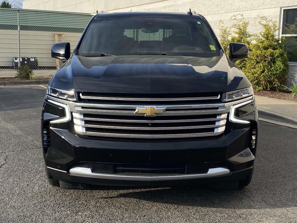 2022 Chevrolet Tahoe High Country Advanced Trailering Package (Hitch Guidance w/Hitch View, Integrated Trailer Brake Controller, Smart Trailer Integration Indicator, and Trailer Side Blind Zone Alert), High Country Deluxe (Adaptive Cruise Control, Air Ride Adaptive Suspension, Dual-Pane Power Panoramic Sunroof, Enhanced Automatic Emergency Braking, and Power-Retractable Assist Steps), Max Trailering Package (Extra Capacity Cooling System), Preferred Equipment Group 3LZ (15" Diagonal Multi-Color Head-Up Display, 1st & 2nd Row Color-Keyed Carpeted Floor Mats, 2-Speed Active Electronic AutoTrac Transfer Case, 3rd Row 60/40 Power-Folding Split-Bench Seat, Automatic Stop/Start, Bose 10-Speaker Centerpoint Surround Audio Sys Ft, Bright Front & Rear Door Sill Plates, Chrome Door Handles w/Body-Color Strip, Color-Keyed Carpeting Floor Covering, Driver & Front Outboard Passenger Airbags, Dual Exhaust System, Enhanced Driver Information Center, Floor Console, Hands-Free Rear Power Programmable Liftgate, HD Surround Vision, Heated 2nd Row Outboard Seats, Heated Steering Wheel, Hill Descent Control, Infotainment Display, Inside Rearview Auto-Dimming Rear Camera Mirror, Lane Change Alert w/Side Blind Zone Alert, Leather-Wrapped Steering Wheel, LED Daytime Running Lamps, Memory Settings, Outside Heated Power-Adjustable Mirrors, Power Release 2nd Row Bucket Seats, Power Tilt & Telescopic Steering Column, Rear Camera Mirror Washer, Rear Cross Traffic Alert, Rear Pedestrian Alert, Remote Start, Safety Alert Seat, SiriusXM Radio w/360L, Start/Stop System Disable Button, Universal Home Remote, and Wireless Charging), 4WD, Jet Black/Mocha Leather, Heads-Up Display, Memory seat, Navigation System, Power driver seat, Power steering, Power windows, Remote keyless entry, 10 Speakers, 3.23 Rear Axle Ratio, 3rd row seats: spl