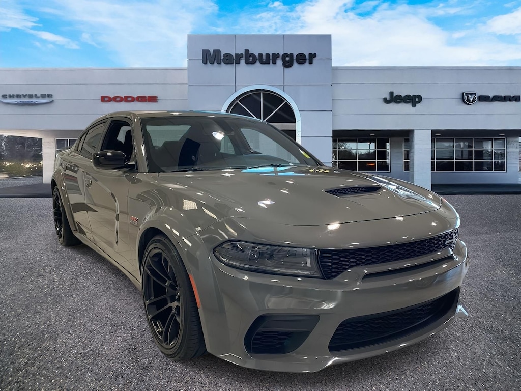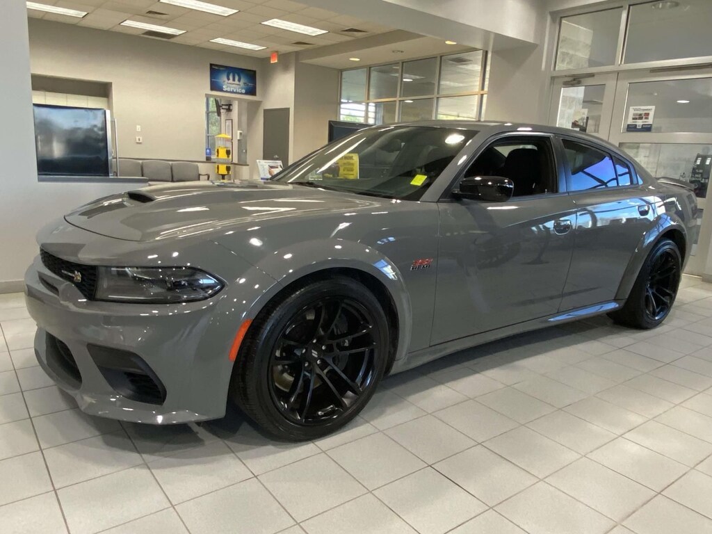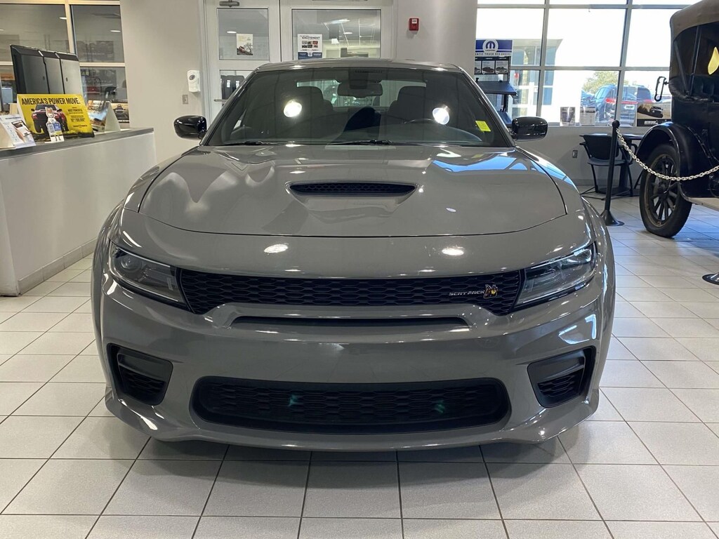 2023 Dodge Charger R/T Scat Pack Widebody Quick Order Package 21V Scat Pack Widebody (All Speed Traction Control, Body Color Fender Flares, Brembo 6-Pot Fixed Front Caliper Brakes, Flat-Bottom Steering Wheel, Performance Shift Indicator, Wheels: 20" x 11" Carbon Black Aluminum, and Widebody Competition Suspension), Widebody Package, 1-Yr SiriusXM Guardian Trial, 2-Piece Shark Fin Antenna, 4-Wheel Disc Brakes, 4G LTE Wi-Fi Hot Spot, 6 Speakers, 8.4" Touchscreen Display, ABS brakes, Adaptive Damping Suspension (DISC), Air Conditioning, Alloy wheels, AM/FM radio: SiriusXM, Anti-whiplash front head restraints, Apple CarPlay, Apple CarPlay/Android Auto, Auto-dimming Rear-View mirror, Automatic temperature control, Brake assist, Bumpers: body-color, Cloth Performance Seats w/Heat, Compass, Delay-off headlights, Driver door bin, Driver vanity mirror, Dual front impact airbags, Dual front side impact airbags, Electronic Stability Control, Emergency communication system: SiriusXM Guardian, For Details, Visit DriveUconnect.com, Four wheel independent suspension, Front anti-roll bar, Front Bucket Seats, Front Center Armrest, Front dual zone A/C, Front fog lights, Front reading lights, Fully automatic headlights, Garage door transmitter: HomeLink, Google Android Auto, GPS Antenna Input, HD Radio, Heated door mirrors, Heated Front Seats, Heated front seats, Heated steering wheel, Illuminated entry, Integrated Center Stack Radio, Integrated Voice Command w/Bluetooth, Knee airbag, Leather Shift Knob, Low tire pressure warning, Manufacturer's Statement of Origin, Media Hub (2 USB, AUX), Occupant sensing airbag, Outside temperature display, Overhead airbag, Overhead console, Panic alarm, ParkView Rear Back-Up Camera, Passenger door bin, Passenger vanity mirror, Power 2-Way Driver Lumbar Adjust, Power door mirrors, Power driver seat, Power steering, Power windows, Radio: Uconnect 4C w/8.4" Display, Rear anti-roll bar, Rear Armrest w/Cupholder Seat, Rear reading lights, Rear seat center armrest, Rear window defroster, Remote keyless entry, Security system, Speed control, Speed-Sensitive Wipers, Split folding rear seat, Spoiler, Sport steering wheel, Steering wheel mounted audio controls, Tachometer, Telescoping steering wheel, Tilt steering wheel, Traction control, Trip computer, USB Host Flip, Variably intermittent wipers, and Wheels: 20" x 9" Lo Gloss Granite CrystaL.