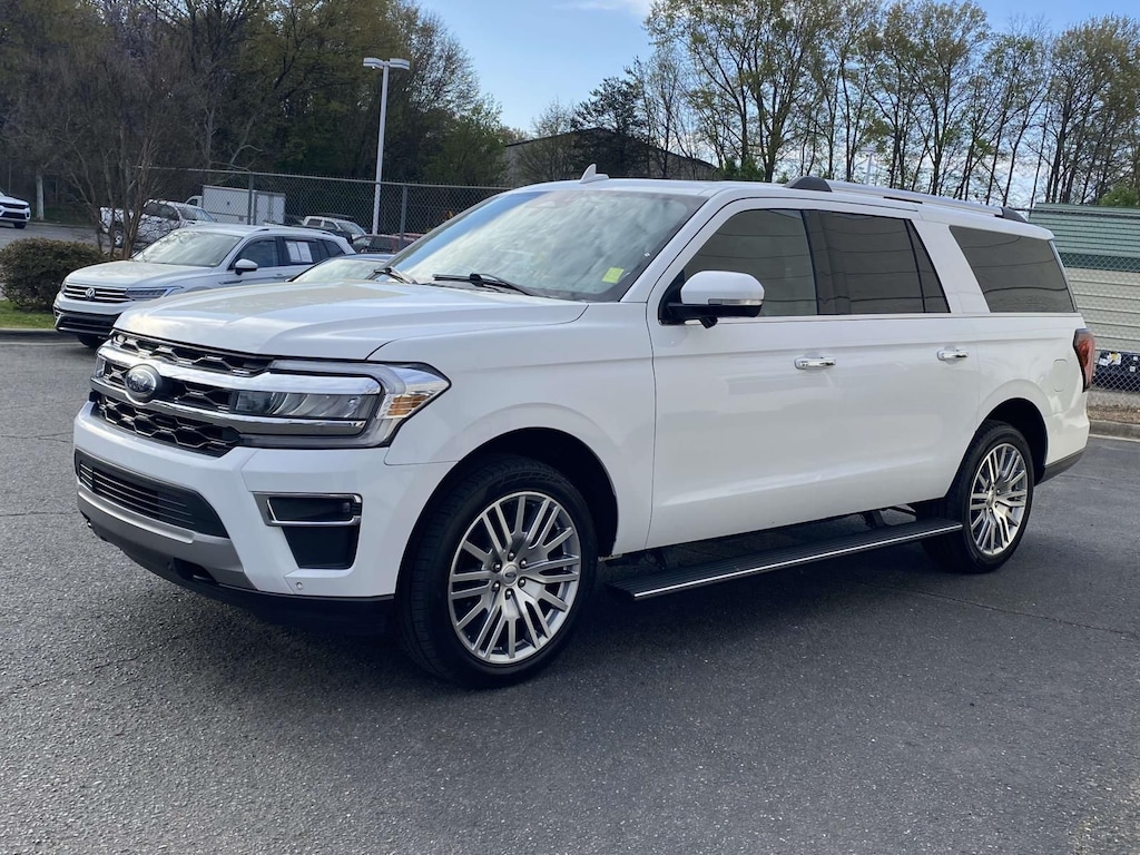 2023 Ford Expedition Max Limited Equipment Group 302A High Package (Ebony Black Mesh Grille, Heavy-Duty Independent Suspension, Magnetic-Painted Power Deployable Running Boards, Power-Folding Sideview Mirrors w/Autofold, and Wheels: 22" 12-Spoke Polished Aluminum), Heavy-Duty Trailer Tow Package (26mm Engine Radiator, 3.73 Axle Ratio, 360-Degree Camera w/Trailer Reverse Guidance, Integrated Trailer Brake Controller, and Pro Trailer Backup Assist), SYNC 4 w/Enhanced Voice Recognition, 12 Speakers, 360-Degree Camera w/Split View, 3rd row seats: split-bench, 4-Wheel Disc Brakes, ABS brakes, Adjustable pedals, Air Conditioning, Alloy wheels, AM/FM radio: SiriusXM with 360L, Auto High-beam Headlights, Auto Start-Stop Removal (DISC), Auto-dimming door mirrors, Auto-dimming Rear-View mirror, Automatic temperature control, Brake assist, Bumpers: body-color, Compass, Connected Built-In Navigation, Delay-off headlights, Driver door bin, Driver vanity mirror, Dual front impact airbags, Dual front side impact airbags, Electronic Stability Control, Emergency communication system: SYNC 4 911 Assist, Exterior Parking Camera Rear, Four wheel independent suspension, Front anti-roll bar, Front Bucket Seats, Front Center Armrest, Front dual zone A/C, Front fog lights, Front reading lights, Fully automatic headlights, Garage door transmitter, Heated & Ventilated Leather Front Captain's Chairs, Heated door mirrors, Heated front seats, Heated rear seats, Heated steering wheel, Illuminated entry, Leather steering wheel, Low tire pressure warning, Memory seat, Navigation system: Connected Navigation, Occupant sensing airbag, Outside temperature display, Overhead airbag, Overhead console, Panic alarm, Passenger door bin, Passenger vanity mirror, Pedal memory, Power door mirrors, Power driver seat, Power Liftgate, Power moonroof, Power passenger seat, Power steering, Power windows, Radio data system, Radio: B&O Sound System by Bang & Olufsen, Rain sensing wipers, Rear air conditioning, Rear anti-roll bar, Rear reading lights, Rear window defroster, Rear window wiper, Reclining 3rd row seat, Remote keyless entry, Reverse Brake Assist, Second Row Power Windows Removal, Security system, SiriusXM w/360L, Speed control, Speed-sensing steering, Speed-Sensitive Wipers, Split folding rear seat, Spoiler, Steering wheel memory, Steering wheel mounted audio controls, Tachometer, Telescoping steering wheel, Tilt steering wheel, Traction control, Trip computer, Turn signal indicator mirrors, Variably intermittent wipers, Ventilated front seats, Voltmeter, and Wheels: 20" Bright Machined Aluminum.