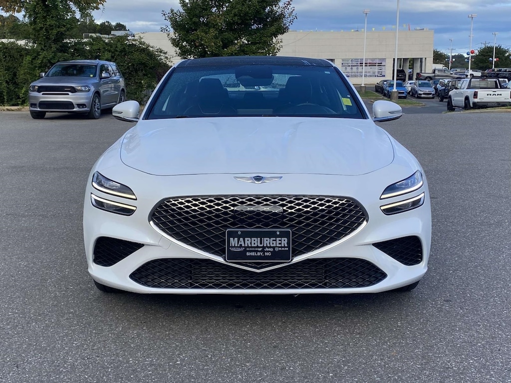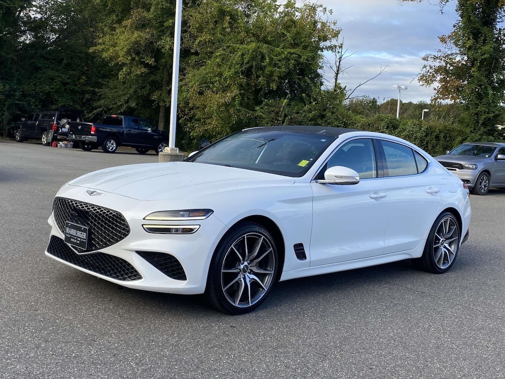 2022 Genesis G70 2.0T Prestige Package (4-Way Power Lumbar Front Passenger Seat, Door & Console Aluminum Trim, Forward/Reverse Parking Distance Warning, Front Passenger Seat Walk-In Device, Front Side Acoustic Laminated Glass, Integrated Memory System (IMS), Leather Seating Surfaces, Option Group 02, Power Folding EC Mirrors w/Logo Lamp, Power Tilt & Telescopic Steering Wheel, Radio: AM/FM/SiriusXM/HD Lexicon Prem Audio System, Rain-Sensing Wipers, Wheels: 19" x 8.0J Fr & 19" x 8.5J Rr Alloy, Wide Sunroof, and Wireless Device Charging), 4-Wheel Disc Brakes, 6 Speakers, ABS brakes, Air Conditioning, Alloy wheels, AM/FM radio: SiriusXM, Android Auto & Apple CarPlay, Anti-whiplash front head restraints, Auto High-beam Headlights, Auto-dimming Rear-View mirror, Automatic temperature control, Brake assist, Bumpers: body-color, Delay-off headlights, Driver door bin, Driver vanity mirror, Dual front impact airbags, Dual front side impact airbags, Electronic Stability Control, Emergency communication system: Genesis Connected Services, Exterior Parking Camera Rear, Four wheel independent suspension, Front anti-roll bar, Front Bucket Seats, Front Center Armrest, Front dual zone A/C, Front reading lights, Fully automatic headlights, Garage door transmitter: HomeLink, Heated door mirrors, Heated front seats, Heated Multi-Adjustable Front Bucket Seats, Heated steering wheel, Illuminated entry, Knee airbag, Leatherette Seating Surfaces, Low tire pressure warning, Navigation System, Occupant sensing airbag, Outside temperature display, Overhead airbag, Overhead console, Panic alarm, Passenger door bin, Passenger vanity mirror, Power door mirrors, Power driver seat, Power passenger seat, Power steering, Power windows, Radio: AM/FM/SiriusXM/HD Audio System, Rear anti-roll bar, Rear reading lights, Rear seat center armrest, Rear window defroster, Remote keyless entry, Reversible Cargo Tray, Security system, Speed control, Speed-sensing steering, Speed-Sensitive Wipers, Split folding rear seat, Steering wheel mounted audio controls, Tachometer, Telescoping steering wheel, Tilt steering wheel, Traction control, Trip computer, Turn signal indicator mirrors, Variably intermittent wipers, Wheel Locks, and Wheels: 18" x 8.0J Alloy.