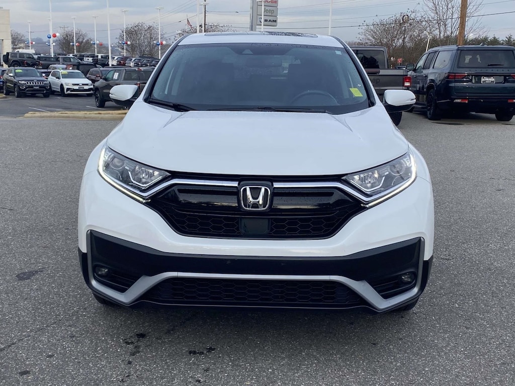 2020 Honda CR-V EX-L 18" Alloy Wheels, 4-Wheel Disc Brakes, 5.64 Axle Ratio, 8 Speakers, ABS brakes, Adaptive Cruise Control: Adaptive Cruise Control (ACC) with Low-Speed Follow, Air Conditioning, Alloy wheels, AM/FM radio: SiriusXM, Apple CarPlay/Android Auto, Auto High-beam Headlights, Auto-dimming Rear-View mirror, Automatic temperature control, Blind Spot Information (BSI) System warning, Brake assist, Bumpers: body-color, Compass, Delay-off headlights, Driver door bin, Driver vanity mirror, Dual front impact airbags, Dual front side impact airbags, Electronic Stability Control, Exterior Parking Camera Rear, Forward collision: Collision Mitigation Braking System (CMBS) + FCW mitigation, Four wheel independent suspension, Front anti-roll bar, Front Bucket Seats, Front Center Armrest, Front dual zone A/C, Front fog lights, Front reading lights, Garage door transmitter: HomeLink, Heated door mirrors, Heated Front Bucket Seats, Heated front seats, Illuminated entry, Leather Seat Trim, Leather Shift Knob, Low tire pressure warning, Memory seat, Occupant sensing airbag, Outside temperature display, Overhead airbag, Overhead console, Panic alarm, Passenger door bin, Passenger vanity mirror, Power door mirrors, Power driver seat, Power Liftgate, Power moonroof, Power passenger seat, Power steering, Power windows, Radio data system, Radio: 180-Watt AM/FM/HD/SiriusXM Audio System, Rear anti-roll bar, Rear seat center armrest, Rear window defroster, Rear window wiper, Remote keyless entry, Security system, Speed control, Speed-sensing steering, Speed-Sensitive Wipers, Split folding rear seat, Spoiler, Steering wheel mounted audio controls, Tachometer, Telescoping steering wheel, Tilt steering wheel, Traction control, Trip computer, Turn signal indicator mirrors, and Variably intermittent wipers.