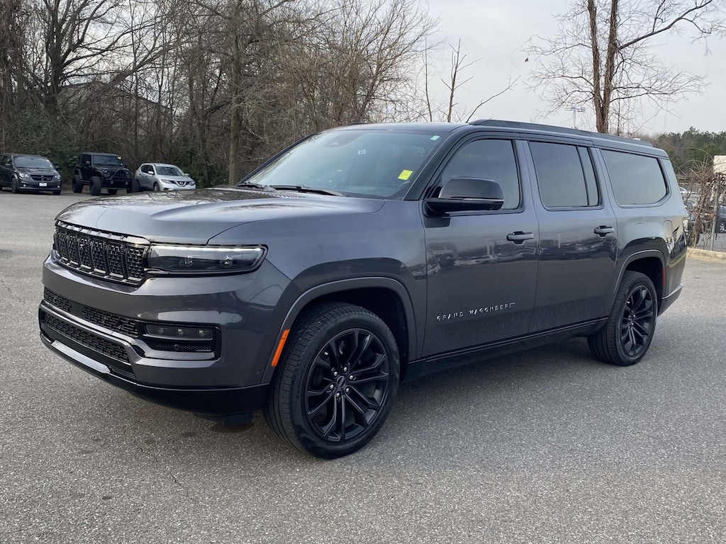 2024 Jeep Grand Wagoneer L Series II Convenience Group III (Active Driving Assist System, Advanced Security Alert System, Interior Rear Facing Camera, Intersection Collision Assist System, and Night Vision/Pedestrian-Animal Detection), Obsidian Appearance Package, Quick Order Package 28T Obsidian (23 Speaker McIntosh Reference Audio System, Adjustable Roof Rail Crossbars, Black Interior Accents, Black Roof, Front Console Cooler, Front Passenger Interactive Display, Gloss Black Upper & Lower DLO Molding, Piano Black Exterior Accents, Rearview Autodim Digital Display Mirror, Ventilated Rear Seats, and Wheels: 22" x 9.0" Tinted Polished w/Black Insert), Rear Seat Video Group 1 (Amazon Fire TV Built-In, Seatback Video Screens, and Video USB Port), Two Tone Paint Group, 19 Speakers, 3.92 Rear Axle Ratio, 3rd row seats: bench, 4-Wheel Disc Brakes, ABS brakes, Adjustable pedals, Air Conditioning, Alloy wheels, AM/FM radio: SiriusXM with 360L, Anti-whiplash front head restraints, Apple CarPlay/Android Auto, Audio memory, Auto High-beam Headlights, Auto-dimming door mirrors, Auto-dimming Rear-View mirror, Auto-leveling suspension, Automatic temperature control, Brake assist, Bumpers: body-color, Compass, Delay-off headlights, Driver door bin, Driver vanity mirror, Driver's Seat Mounted Armrest, Dual front impact airbags, Dual front side impact airbags, Electronic Stability Control, Emergency communication system, Four wheel independent suspension, Front anti-roll bar, Front Bucket Seats, Front Center Armrest w/Storage, Front dual zone A/C, Front fog lights, Front reading lights, Fully automatic headlights, Garage door transmitter, Genuine wood console insert, Genuine wood dashboard insert, Genuine wood door panel insert, Heads-Up Display, Heated door mirrors, Heated front seats, Heated rear seats, Heated steering wheel, Illuminated entry, Knee airbag, Leather steering wheel, Leather Trimmed Bucket Seats, Low tire pressure warning, Memory seat, Navigation System, Normal Duty Suspension, Occupant sensing airbag, Outside temperature display, Overhead airbag, Overhead console, Panic alarm, Passenger door bin, Passenger seat mounted armrest, Passenger vanity mirror, Pedal memory, Power adjustable front head restraints, Power door mirrors, Power driver seat, Power Liftgate, Power moonroof, Power passenger seat, Power steering, Power windows, Radio data system, Radio: Uconnect 5 Nav w/12.0" Display, Rain sensing wipers, Rear air conditioning, Rear anti-roll bar, Rear dual zone A/C, Rear reading lights, Rear seat center armrest, Rear window defroster, Rear window wiper, Reclining 3rd row seat, Remote keyless entry, Security system, Speed control, Speed-sensing steering, Speed-Sensitive Wipers, Split folding rear seat, Steering wheel memory, Steering wheel mounted audio controls, Tachometer, Telescoping steering wheel, Tilt steering wheel, Traction control, Trip computer, Turn signal indicator mirrors, Variably intermittent wipers, Ventilated front seats, and Voltmeter.