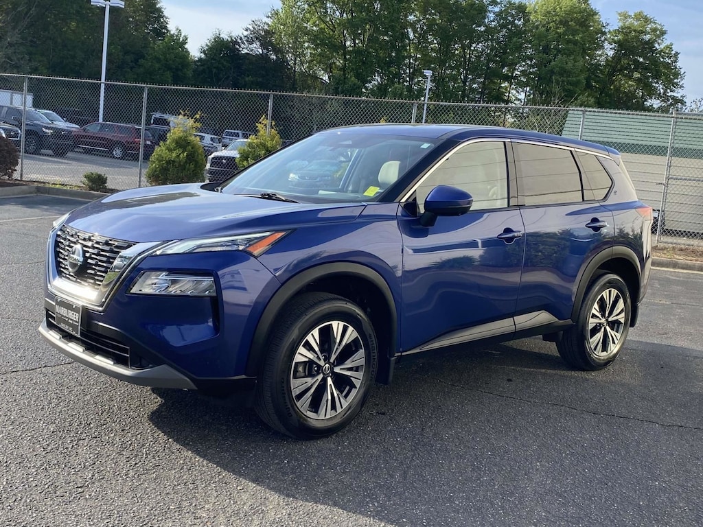 2021 Nissan Rogue SV 4-Wheel Disc Brakes, 6 Speakers, ABS brakes, Air Conditioning, AM/FM Radio, AM/FM radio, Black Splash Guards (Set of 4), Bumpers: body-color, Heated door mirrors, Power door mirrors, Radio data system, Speed control, 18" Aluminum Alloy Wheels, 5.604 Axle Ratio, Alloy wheels, Auto High-beam Headlights, Automatic temperature control, Brake assist, Chrome Rear Bumper Protector, Cloth Seat Trim, Delay-off headlights, Driver door bin, Driver vanity mirror, Dual front impact airbags, Dual front side impact airbags, Electronic Stability Control, Emergency communication system: NissanConnect Services, First Aid Kit, Floor Mats w/1-Piece Cargo Area Protector, Four wheel independent suspension, Front anti-roll bar, Front Bucket Seats, Front Center Armrest, Front dual zone A/C, Front reading lights, Fully automatic headlights, Illuminated entry, Knee airbag, Low tire pressure warning, NissanConnect featuring Apple CarPlay and Android Auto, Occupant sensing airbag, Outside temperature display, Overhead airbag, Overhead console, Panic alarm, Passenger door bin, Passenger vanity mirror, Power driver seat, Power steering, Power windows, Rear anti-roll bar, Rear Parking Sensors, Rear seat center armrest, Rear side impact airbag, Rear window defroster, Rear window wiper, Remote keyless entry, Security system, Speed-Sensitive Wipers, Split folding rear seat, Spoiler, Steering wheel mounted audio controls, Tachometer, Telescoping steering wheel, Tilt steering wheel, Traction control, Trip computer, Turn signal indicator mirrors, and Variably intermittent wipers.