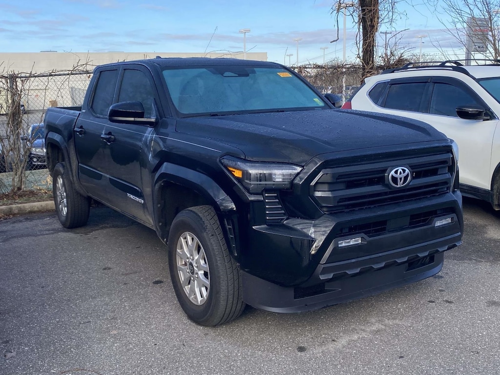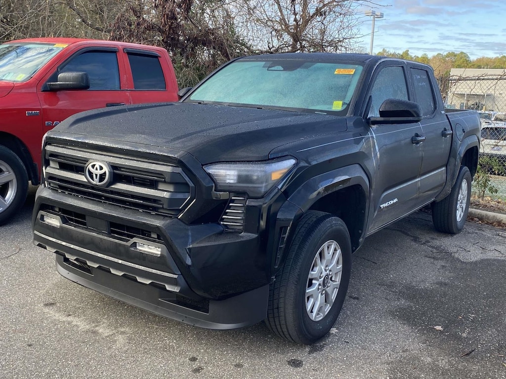2025 Toyota Tacoma 3.583 Axle Ratio, 4-Wheel Disc Brakes, 6 Speakers, ABS brakes, Air Conditioning, Alloy wheels, AM/FM radio: SiriusXM, Anti-whiplash front head restraints, Apple CarPlay/Android Auto, Auto High-beam Headlights, Auto-dimming Rear-View mirror, Brake assist, Bumpers: body-color, Driver door bin, Dual front impact airbags, Dual front side impact airbags, Electronic Stability Control, Emergency communication system: Safety Connect (1-year trial), Exterior Parking Camera Rear, Fabric Seat Trim, Four wheel independent suspension, Front anti-roll bar, Front Bucket Seats, Front Center Armrest, Front fog lights, Front reading lights, Fully automatic headlights, Heated door mirrors, Illuminated entry, Knee airbag, Low tire pressure warning, Occupant sensing airbag, Outside temperature display, Overhead airbag, Overhead console, Panic alarm, Passenger door bin, Power door mirrors, Power steering, Power windows, Radio: 8" Toyota Audio Multimedia, Rear step bumper, Rear window defroster, Remote keyless entry, Speed control, Speed-sensing steering, Split folding rear seat, Steering wheel mounted audio controls, Tachometer, Telescoping steering wheel, Tilt steering wheel, Traction control, Trip computer, and Variably intermittent wipers.